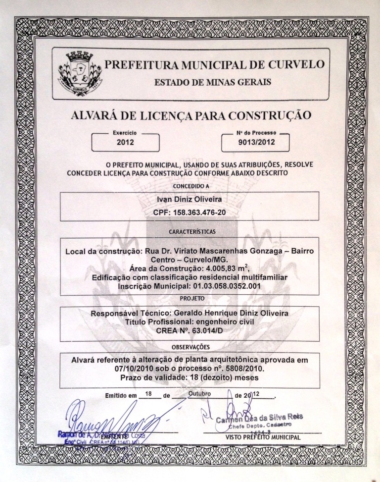 que a obra e projeto estão de acordo com a lei, é o que chamamos de Alvará.